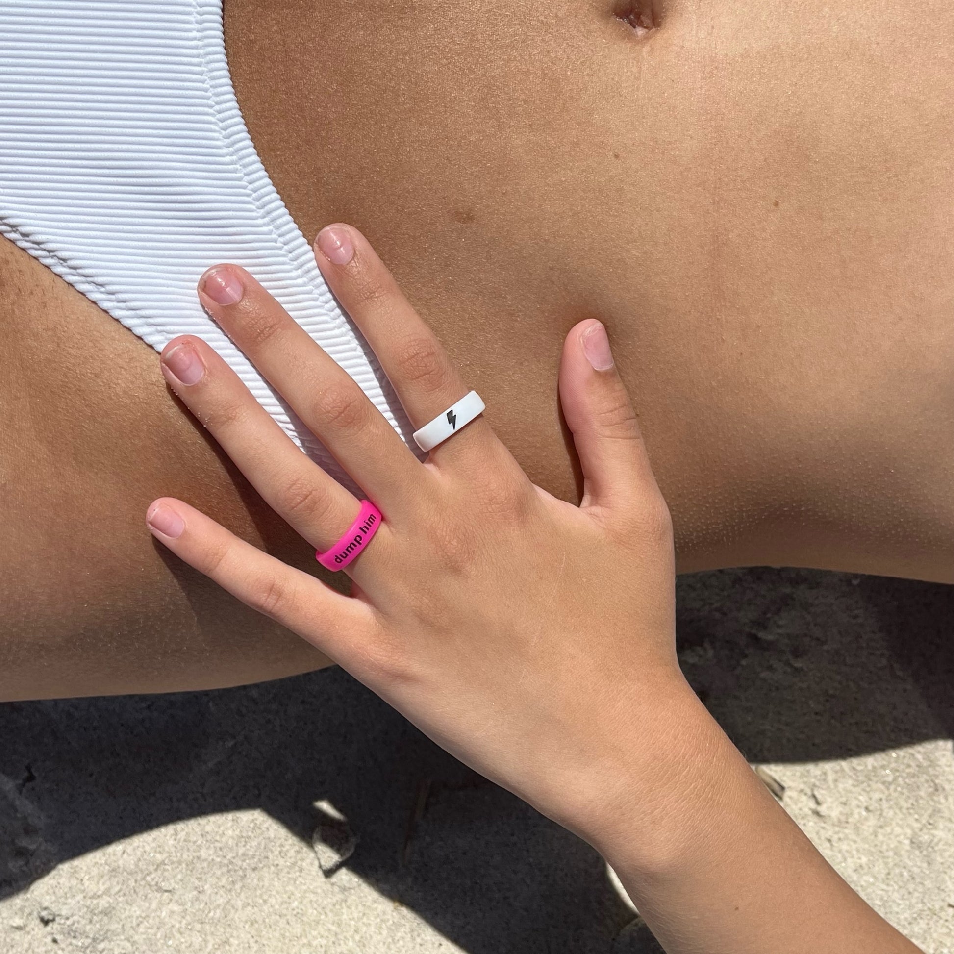 Flip Rings are medical grade silicone, hypo-allergenic, ultra-comfortable, waterproof and won't rub off on your skin or clothes.